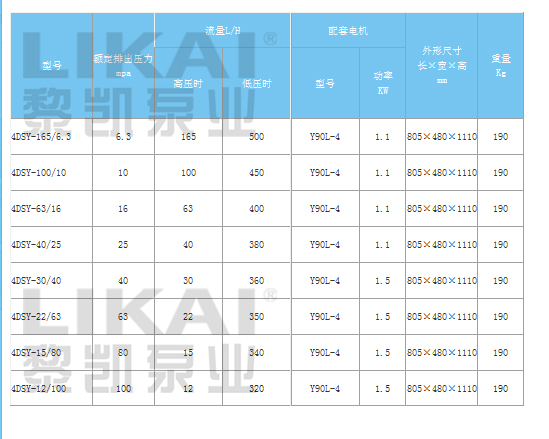 該泵系按水壓試驗要求而特殊設計。在試壓的初始階段具有較大流量、能迅速充液和升壓,以縮短實驗時間。當壓力超過1.6MPa后、為使試壓過程能較平穩而緩慢地進行。則流量自動減少。所以本泵在高、低壓時有兩種流量,并能自動變換,凡在額定排出壓力以下,可進行任意數值的水壓試驗。
