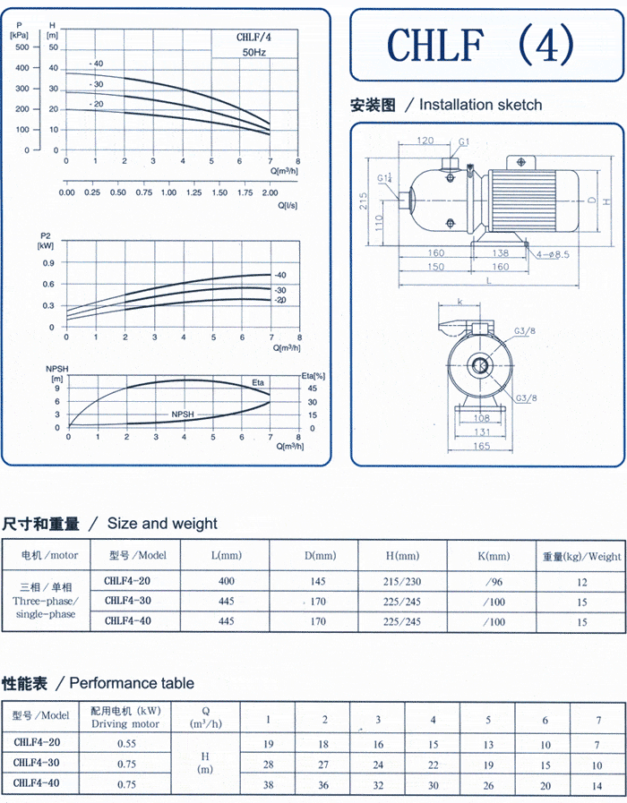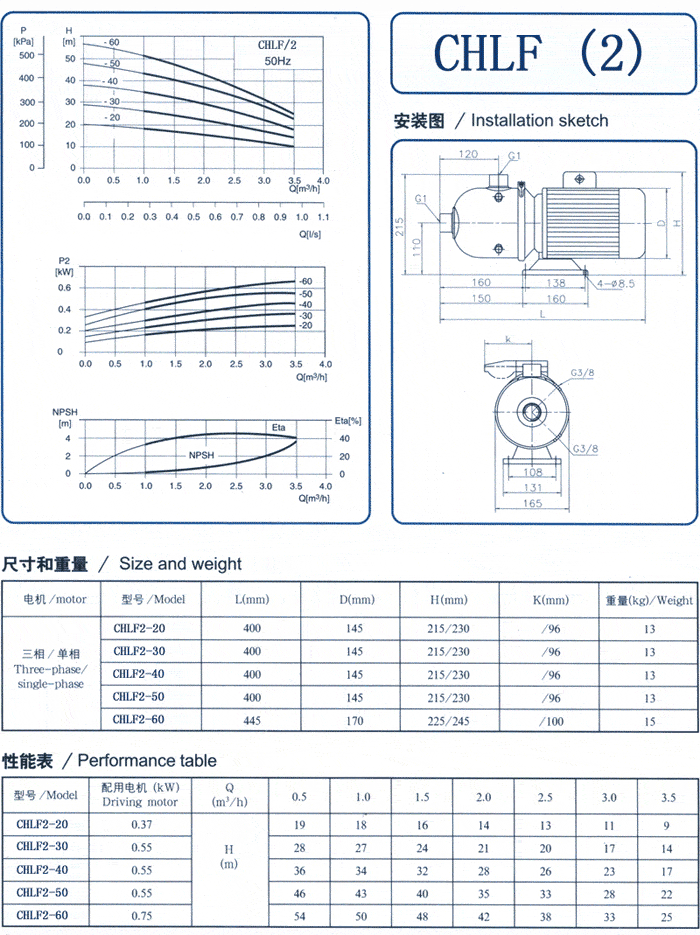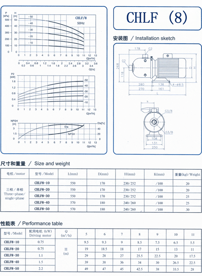 CHL,CHLK和CHLF(T)型泵主要用于家庭型中央空調循環及工業上液體的傳輸。