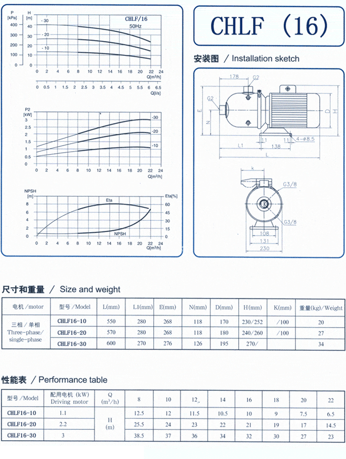 CHL,CHLK和CHLF(T)輕型臥式多級離心泵采用了免修機械密封。泵的過流部件均采用不銹鋼材料(304或316)制成,具有低噪音,耐輕腐蝕,外形美觀、體積小、重量輕、使用壽命長等特點。